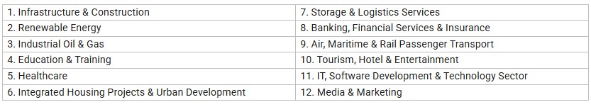 KDIPA has identified 12 key sectors to attract foreign investment and diversify Kuwait's economy beyond oil. These are: