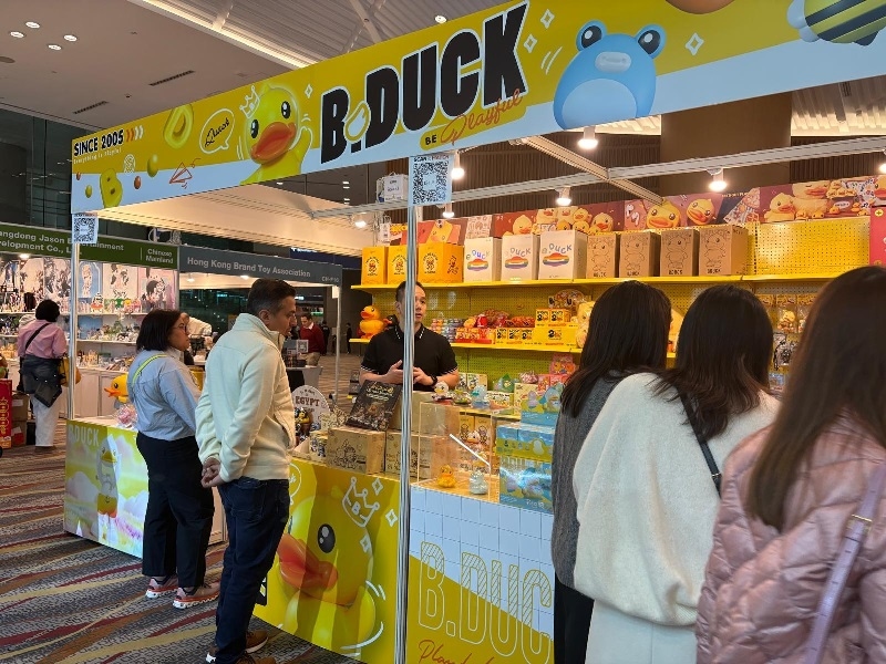 香港本地上市原創IP「B.Duck小黃鴨」,深受香港及中國內地市場歡迎。香港區銷售代表黎智盈表示,此前有參加過本局舉辦的「香港國際授權展」及「香港禮品及贈品展」,但今年大會在「香港玩具展」新增了全新的「潮玩館」,宣傳力度比以往更大,人流方面比她預期多,能有效吸引更多海外客人。