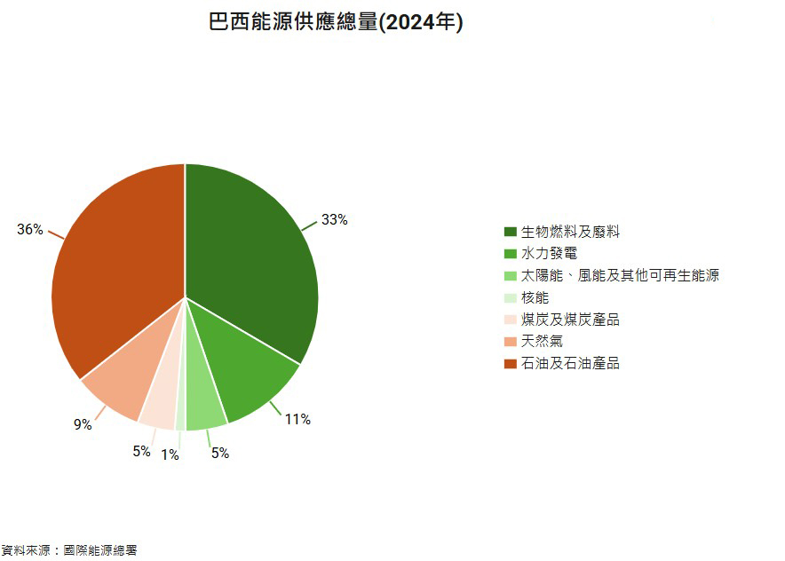 巴西擁有豐富的生物多樣性,是主要的農產品出口國,也是生物燃料的主要生產國。2024年,生物燃料佔巴西能源供應的比例超過33%。事實上,巴西多年來一直推廣生物燃料,早在2005年便強制要求將生物柴油與柴油混合使用。展望未來,巴西已定下目標,要在2034年之前生產485億公升生物乙醇和136億公升生物柴油,推動國內產業邁向更可持續的經濟模式。