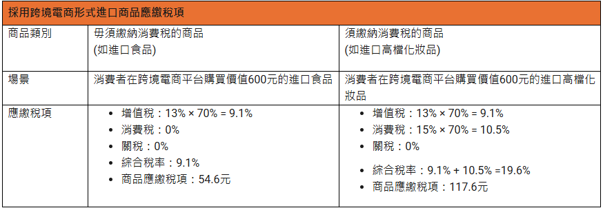 資料來源:《關於調整化妝品消費稅政策的通知》(財稅 [2016] 103號)、《關於跨境電子商務零售進口稅收政策的通知》(財關稅 [2016] 18號)